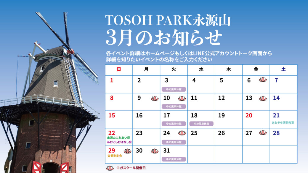 Home » お知らせ » 3月のお知らせ_ゆめ風車休館日