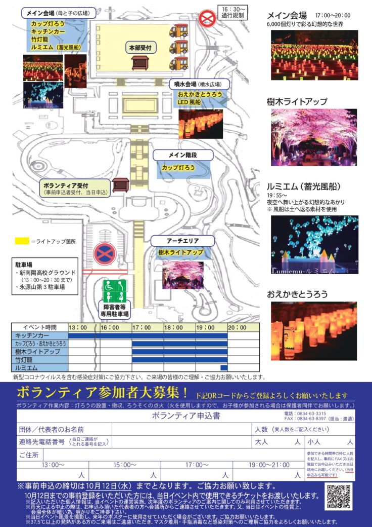ただいま、新南陽商工会議所では、灯ろうの設置、点灯にご協力いただける団体・個人のボランティアを募集しています。