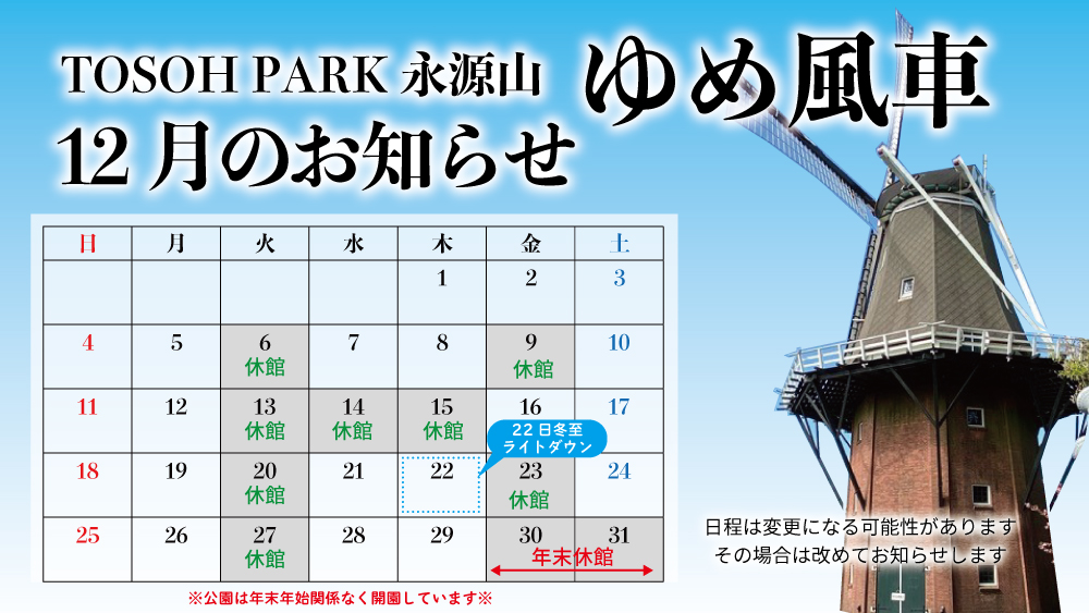 Home » お知らせ » 12月ゆめ風車休館日