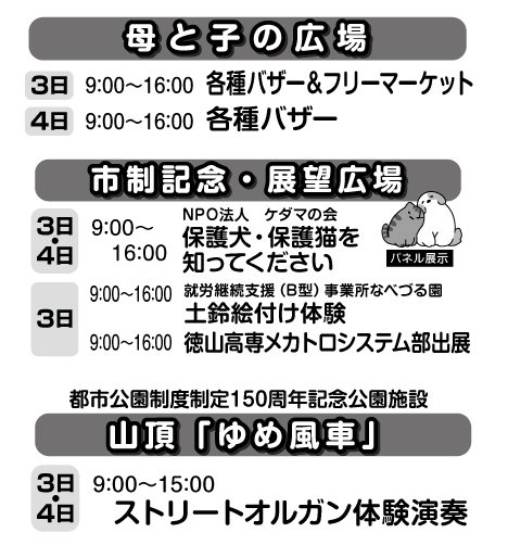 母と子の広場 / 憩いの広場 / 市制記念広場・展望広場・ゆめ風車