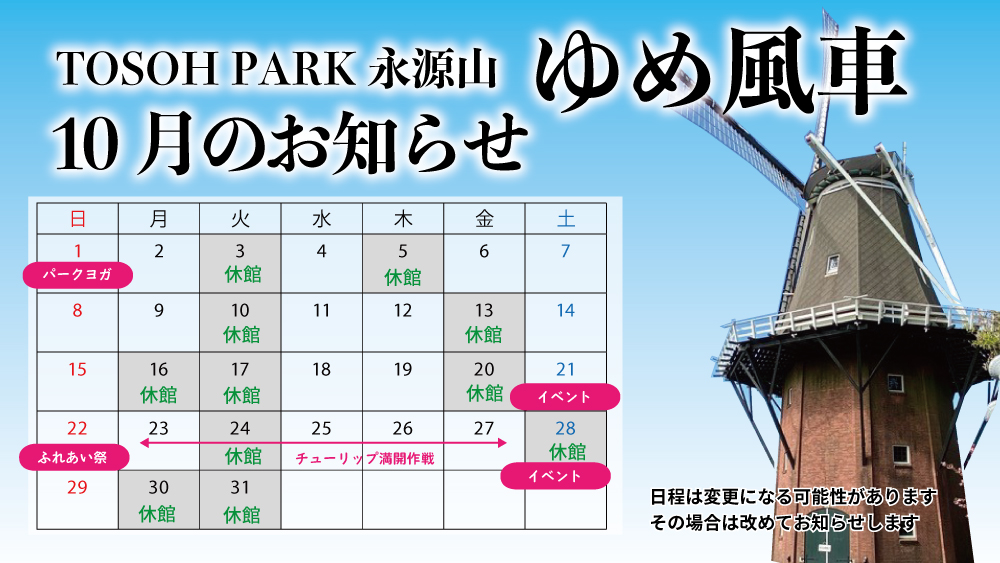 10月ゆめ風車休館日